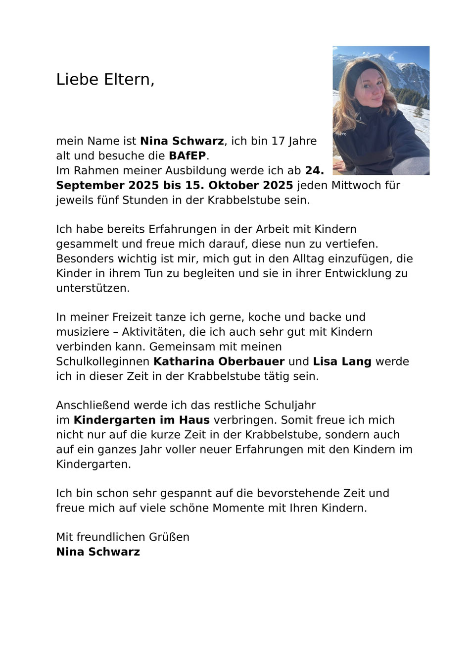 Zukünftige Elementarpädagoginnen in Ausbildung praktizieren in unserer Einrichtung.